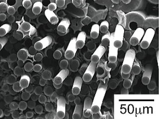 SEM micrograph of silicon carbide fiber-reinforced silicon carbide matrix (SiCf/SiC) composites